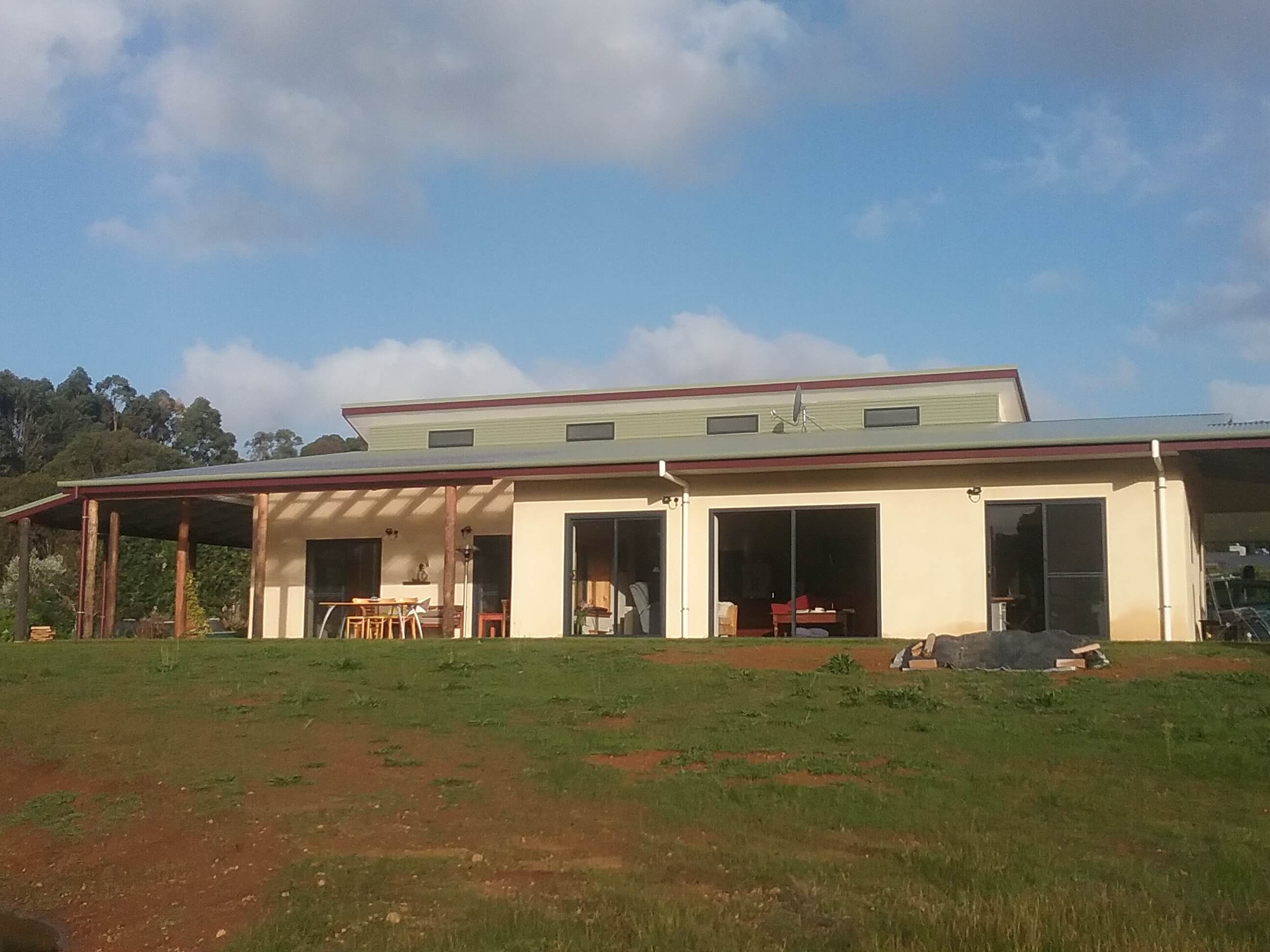 We are situated on a hectare deliberately chosen between town and the coast. We designed our home to have a low running cost and to be comfortable to live in with no additional cooling needed in summer and minimal heating in winter.