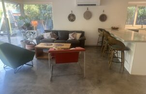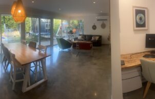We moved into our 1980 4×2 knowing it needed work. We started our sustainable renovation journey gradually as both our budget allowed and when appliances needed replacement. We focussed on researching and upgrading to highly energy and water efficient appliances. The garden is also a key part of our sustainability journey, with fruit trees, natives, water wise plants, and ‘green walls’. In 2024 we renovated, still keeping within the existing footprint but in a way to make our spaces more functional including: