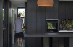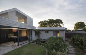 Like many homes of its era, this one was built with little consideration for lifestyle or passive cooling and heating. It faces east-west, has low ceilings and receives little natural light inside, and the easiest thing would have been to knock it down and start again. But reusing the home was important for sustainability, so our solution was to add an open pavilion with a new kitchen and outdoor dining area. The original home was then reconfigured to provide a new laundry, TV room and study, as well as a master bedroom and ensuite that opens to the garden.