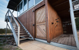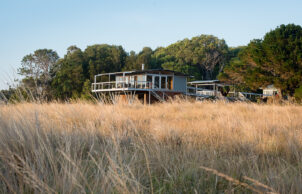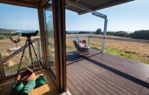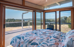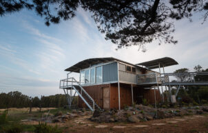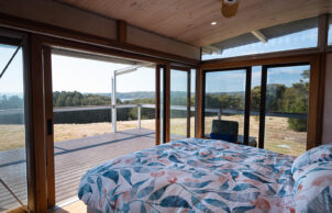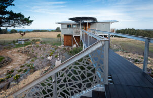 A self-contained prefabricated pod extends the living space without impacting the landscape on our NSW South Coast property. Tucked away on the 16-hectare bushland property, our Ecoshelta pavilion takes advantage of its jaw-dropping headland position while minimising the impact on the landscape and environment.