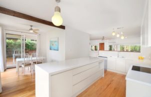 Most of the original timber frame was replaced, but the timber was used to make the outdoor studio, which also utilised the only useable window and external door. Of course, the old internal doors and as much of the old skirtings and architraves that were OK were reused, and the original weatherboards were salvaged and repurposed – for example, on the barn door and kitchen cabinets.