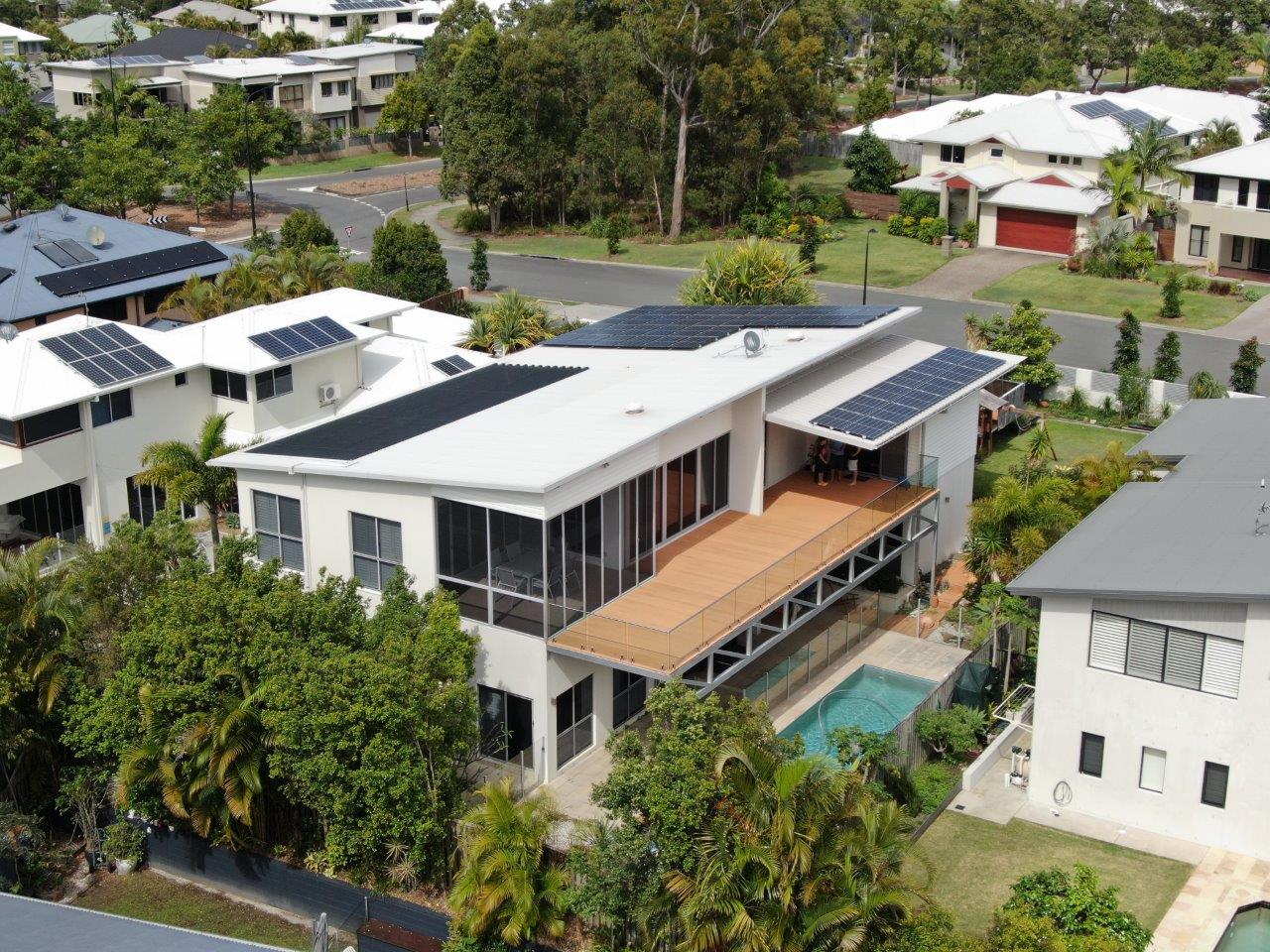 Owner build & designed 2 story concrete house started 2005. Main considerations in design were solar orientation, prevailing winds, views, low maintenance. Added 12.75 kw solar, pool solar blanket, and 14 kw battery. No electricity bill since 2016. Plans to upgrade gas appliances to electric when spare funds are available.
