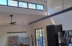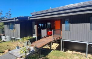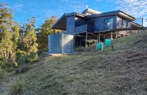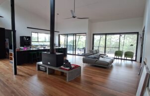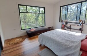 The owners wanted to build a house as environmentally and sustainably as they could, to live more consciously and close to nature; to move away from toxic building practices; to optimise longevity & minimise their footprint; to live in a low waste system (energy production, water storage, food production); design using passive solar principles, for aging in place, to make use of natural, renewable, recyclable & local materials & services. With no previous house building experience, Rod and Lindy, owner builders, built during the difficult time of 2022-2024 with soaring costs and lack of building materials and trades. With a BAL29 bushfire rating many materials were either not suitable, didn’t have a fire rating or were too difficult to maintain.