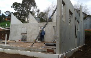 The house is constructed using concrete tilt panels on concrete slab, coolstorage panel ceiling system with added insulation over the ceiling. Polystyrene insulation over walls down into the soil to 500mm depth.