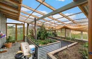 Over winter the only heating we used was a wood fired oven, which we also use to cook on. This has saved plenty of money on bills. With such a super insulated house the suns energy or the energy from the fire of an evening is trapped in the house and sinks into the thermal mass. We also collect our own water, have a greenhouse and a chook house- both the latter being made from found materials.