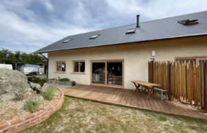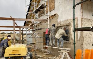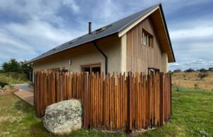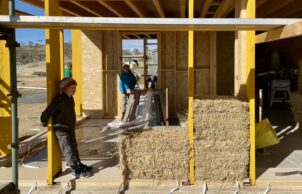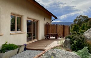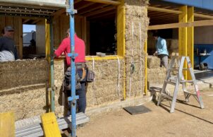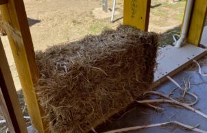 While material choice is important in an energy efficient home, orientation is just as important. Our architect ensured the principle living areas face the north and has designed the roof to maximise sun in the cooler months and omit it in the summer. With a north facing roof we can also fit plenty of solar panels. The concrete floor as well as the mud render on the strawbale both provide excellent thermal mass to the interior of the house. We’ve also used double-glazed timber frame windows and doors.