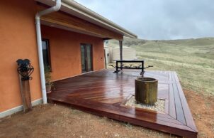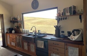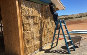 Our appliances are all electrical, no air con, a wood fire heater for winter, windows and doors are double glazed, outer walls are strawbale with render, all internal walls and roof are insulated with Earthwool, wood flooring is bamboo, and internal walls are painted with BioPaint – a natural paint. Our overall aim was to create a healthy, natural and simple home that was low-budget, had basically no running costs and would live harmoniously with the surrounding natural landscape.