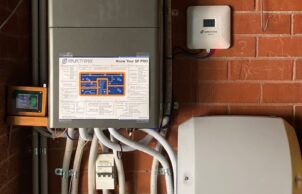 Both solar array systems are unified in a hybrid off-grid sytem When the sun is shining, this system can power the house and/or charge the electric vehicle/s and/or charge the storage batteries ( 34 kWhs). Excess electricity, up to 5 kW can be exported to the grid. When there is no solar power, the batteries can supply the house load. If there is no solar or insufficient battery power, electricity can be taken from the grid. If there is a grid outage, the batteries can ‘ keep the lights on ‘.