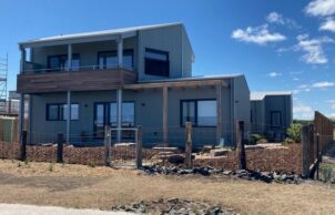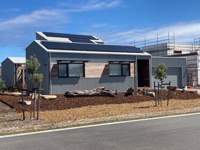 Our house is passive design, has a north-south orientation with triple glazed windows, which allow large views to the sea. Located in a sustainable development, the northern aspect of the house is single storey and the southern is double storey, incorporating an east-facing courtyard providing protection from the wind. The house is all electric with energy efficient appliances, timber floors and heat pump hot water service and split-system heating/cooling. We have 7.1 kw of solar panels and 7.4 kwh storage battery which supplies 90% of our energy. The house is very air-tight with a HRV air-circulation system achieving a rating of 0.41 air exchanges/per hour.