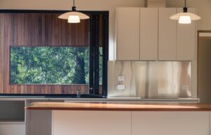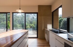 The owner of this house wanted to downsize, ready for retirement. As it was important for her to stay in the same community, she subdivided and built her new house on an empty part of the block below kunanyi/Mount Wellington.
