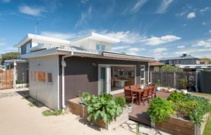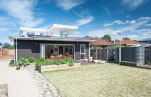 Solar Sollew is a model example of how low-impact a home can be when all the elements of sustainable design are carefully considered and integrated together. With a 9.0 Star energy rating, the passive solar house combines multi-generational living with accessible house design.