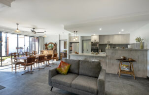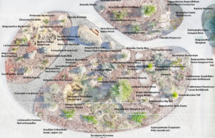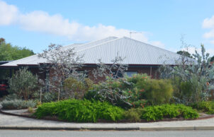 It was important for us to establish a sustainable garden. Most of our garden comprises waterwise native plants and requires very little water. We’ve also re-established and enlarged our edible garden, adding blueberries, fig and pomegranate trees, strawberries, rhubarb and herbs, and a variety of annual vegetables. The native garden is also a means of providing habitat, contributing to the wildlife corridors that run through our area. It is always full of birds and insects and we have a family of resident bobtail goannas. I keep a record of the plants we’ve put in so that I can remember their names and determine which are best suited to survive and flourish in our sandy soil without the need for watering.