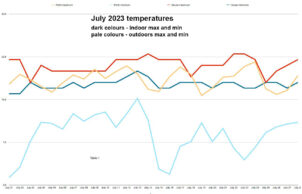The other means of controlling the inside temperature is to control the conditions. After several years we have re-established our garden with new trees high enough to provide a cooling effect in summer. We also have ornamental grapes getting established across our pergola and have a shade sail that goes up each summer and comes down to allow the north sun in during winter.