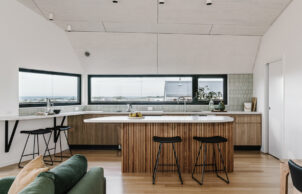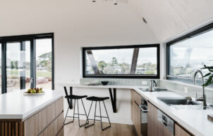 Straithouse aims first to make optimal use of the elevated and sloping site which gives views over Bass Strait to the south west and south east, and rural views to the north. Energy efficiency was crucially important, aiming to provide the best thermal performance possible.