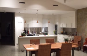Heating is gas hydronic panels, which we only use every day or two for a few hours (if needed). Mechanical cooling is not required due to the electrically operated clerestory windows and ceiling fans.