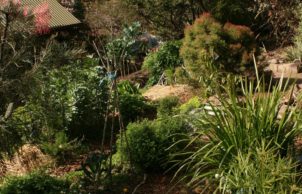 Located on a steep hill, the Moss House garden is an example of a 12-years-old vibrant, sustainable permaculture property, designed with the primary goal to provide the owners with food and medicinal plants.
