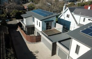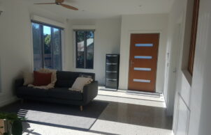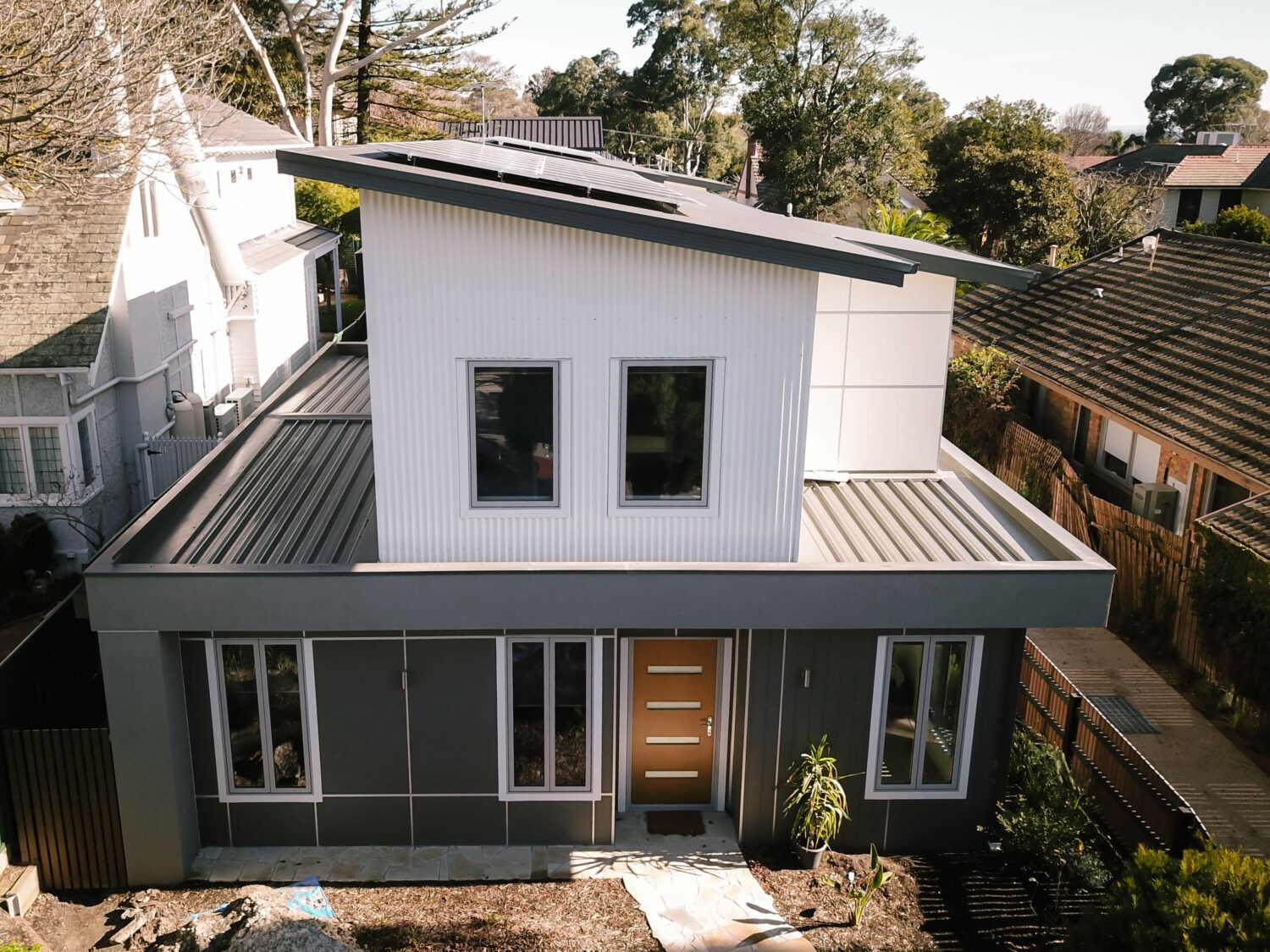 The client brief was to develop two solar passive designed homes that would be suitable for multi generational living, where the living area can flow out onto a north facing deck and garden. Design features that contribute to solar passive design include exposed concrete slab with north facing windows, high insulation in walls and ceiling, high performing windows, cross flow ventilation, ceiling fans in all rooms and shading for summer. Additional features in each property include 5kW of panels on north facing roof and 5,000 litre rainwater tank underground in the driveway for both properties.