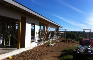 We owner built and designed this house 5 years ago, to move to an off grid lifestyle, in a healthy and liveable house. We lived on a neighbouring property for 17 years and had an understanding of the local environment and designed accordingly. We wanted a simple pallet of materials, which could be used in their rawest form without extra layers, or waste, last a life time and balance the embodied energy of the home. The house is a Strawbale post and beam construction on a concrete slab; with a worm farm for waste treatment; rain tanks for water storage; and a 3 kilowatt solar system with battery storage which a generator to support the longevity of the system. We did install underfloor heating but have never needed to it switch on, and use an instantaneous water heating system and gas for cooking.
