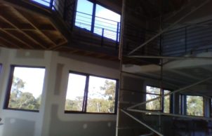 All windows are thermally broken double glazed aluminium. There are also four mechanically operated windows positioned in the centre of the cathedral ceiling allowing for sunlight into the centre of the home and for purging of unwanted hot air during the summer months. Majority of windows are positioned to the north and east to maximise natural light. The homes internal temperature will be maintained by a 3 phase refrigerated heating cooling unit. It is expected the 10kW solar system installed on the stable roof should offset power used. Hot water will be provided by 2 heat pump units.