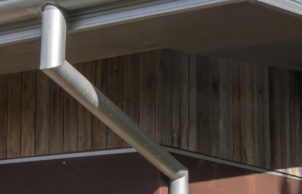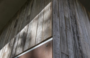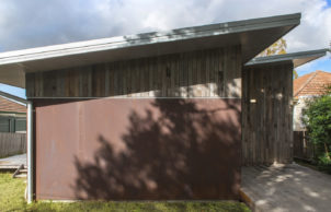 The walls are constructed from simple 90mm timber frames, clad with a mix of Corten rusty steel, and recycled fence palings as weatherboards. Both are fixed over a breathable cavity, which has a waterproof but fully breathable wall wrap behind, over the outside of the stud frame, which is insulated with Greenstuf R2.5 polyester batts. Conventional painted plasterboard linings kept the budget under control.