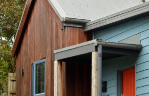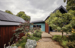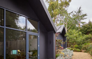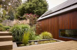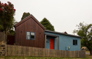 This modest sized corner allotment in Central Ballarat had been subdivided from the property of a gold rush era bluestone home, and as such our parcel of land fell into a heritage overlay. The slope of the land is remnant of both an ancient lava flow and mining activities of the late nineteenth century. The architectural styles of the neighborhood are varied but we decided to pay homage to the traditional style of the pitched roof miners cottage. Privacy and solar gain were important so we set the building as close to the street corner as was allowed in order to maximize the private open space to the north of the building. The modern gable-ends of the home were faced to the sun and the splayed roof overhangs were designed to omit the unwanted summer sun and to obscure views from the street.