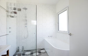 The house has three bedrooms, a study/guest room and two bathrooms (no ensuite). The laundry houses the HRV and hot water tank as well as the usual functional items.