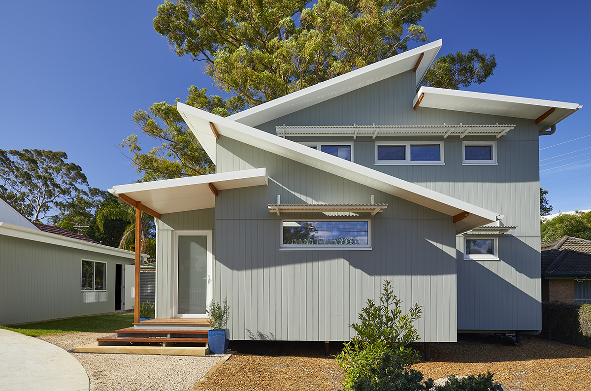 The building form maximises solar gain for warmth in winter while maximising shade to keep cool in summer. The north facing roof allows for a 5kW photovoltaic system, sufficient to be energy positive over the year despite significant shading from a magnificent tallowwood tree.