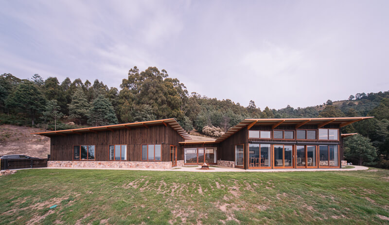 When Peter and Robyn Tuft decided to make a move from Sydney to Southern Tasmania, they sometimes joked about being climate change refugees – but their joking was only partly in jest. Sydney was getting too hot and too busy. They yearned for a cooler climate, a slower pace and water views. Their journey in search for a refuge brought them to an 80 hectare slice of heaven in the hills above the village of Kettering, and ultimately to the creation of a home that would tread lightly on the planet.