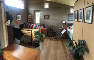 Here I have a building on an island off an island with a core material that has come from Europe and a principal building team who lived 1 3/4hr drive away plus a short-term hemp building team from Victoria. The materials and team were thus as they were not available at the “crest of the wave” in Australia’s hempcrete building. Yet, it is a modest 71m2 with an open plan, minimal “structure”. The building process created minimal rubbish on site. The final construction cost of around $5000/m2 including all design, planning, water catchment/supply, off grid power.