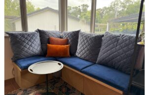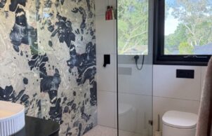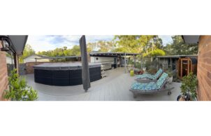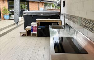 We were determined to bring it back to its former glory: we pulled out the oil heating, installed reverse cycle heating/cooling both in the main house and in the work studio and gym, installed PV panels on the main house and studio along with a battery, installed EV car charging for our two EVs, insulated the ceiling and walls, retro fitted double glazing to the original timber Stegbar windows downstairs, and put an evaporative cooler upstairs. Our most recent upgrades include a swim spa heated with a heat pump, a full electric outdoor kitchen to replace the old gas barbecue, and a tiny two person sauna that runs off the battery. We have 10 fruit trees, and four wicking beds for growing vegetables.