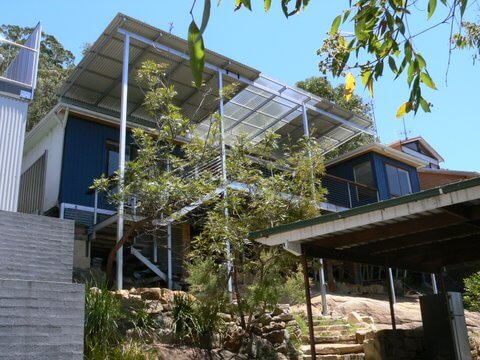 This ongoing project has involved insulating both internal and external walls, while fibro (asbestos) cladding is removed and replaced by plywood at the front and Colorbond at the back (to minimise risk during fires).