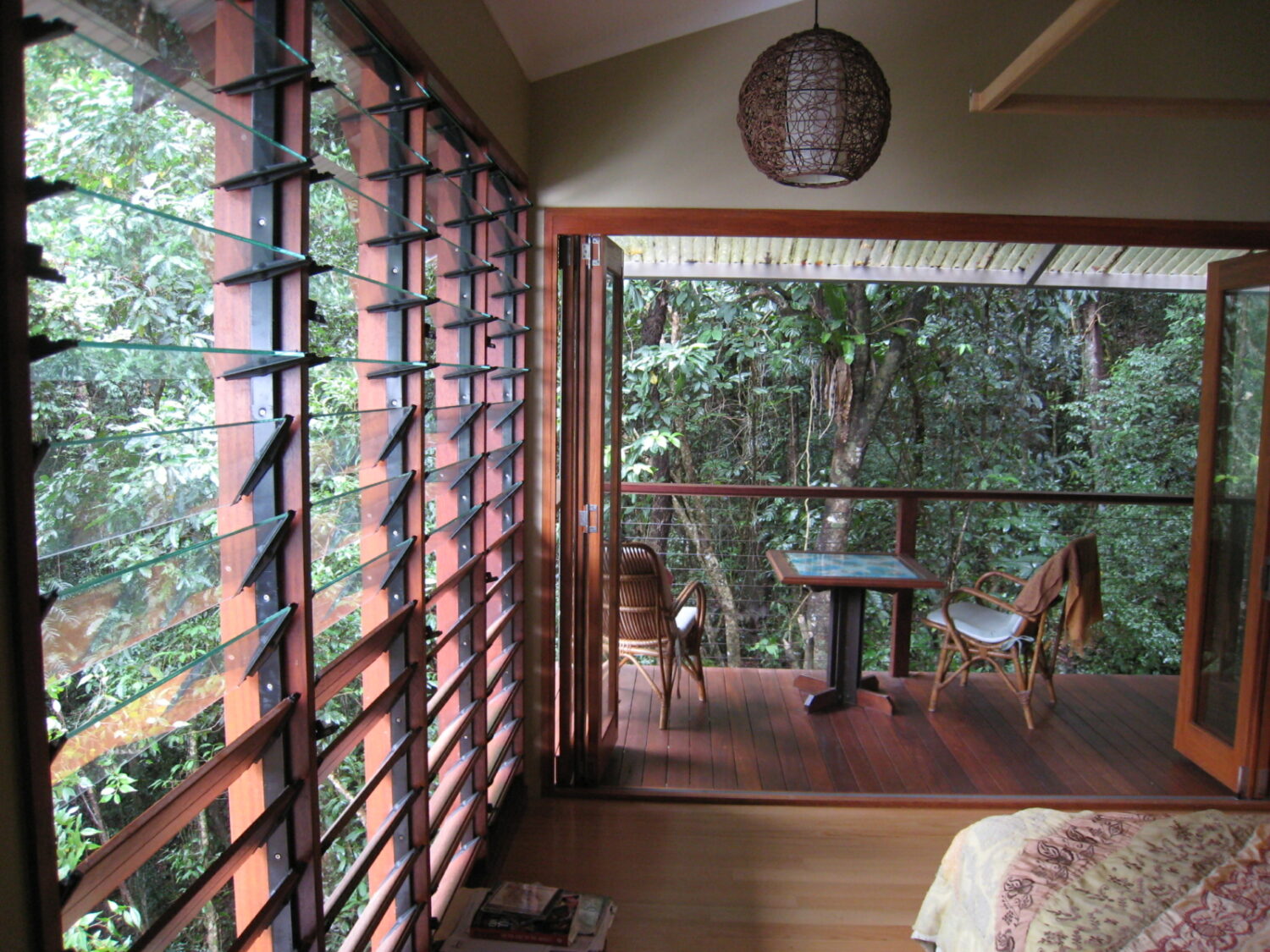 Designing for climate and understanding a vernacular approach to the specific site depending on its location is fundamental. Envirotecture’s “Rainforest House” had a low-tech approach to this hilly subtropical site, with a lightweight structure, a cyclone shelter beneath the house, and lots of natural-cooling along with ceiling fans. Facing more extreme weather now with climate change, a consideration for mechanical ventilation, cooling and dehumidification would now enter the conversation if this was designed today.